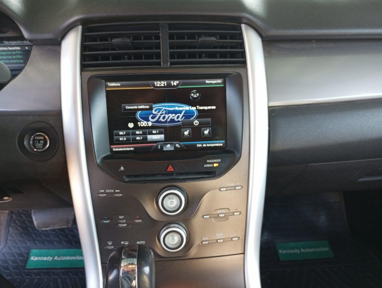 2013 Ford Edge 3.5 SEL 4WD automático 6 velocidades Tercer propietario, 2 llaves, documentación al día, mantención en la marca hasta los 60.000 kls continuando la pauta con mecánico reconocido. Pantalla táctil de 8'', sistema de audio con 6 bocinas, aire acondicionado bi-zona, encendido con stop/start, vidrios eléctricos. Control de velocidad de crucero, cierre centralizado. Asientos delanteros eléctricos, apoya brazos en consola central y posterior. 6 airbags, frenos ABS, EBD, sistemas TCS, RSC, cámara de reversa con alarma perimetral, inmovilizador antirrobo. Motor 3.5 L V6 automático 6 velocidades, potencia 285 hp/6.250 rpm, torque 253 lb/ft /4,000 rpm. Compra inteligente - financiamiento automotriz Retoma de vehículo en parte de pago. Tarjeta débito y crédito Seguro para todo tipo de vehículo