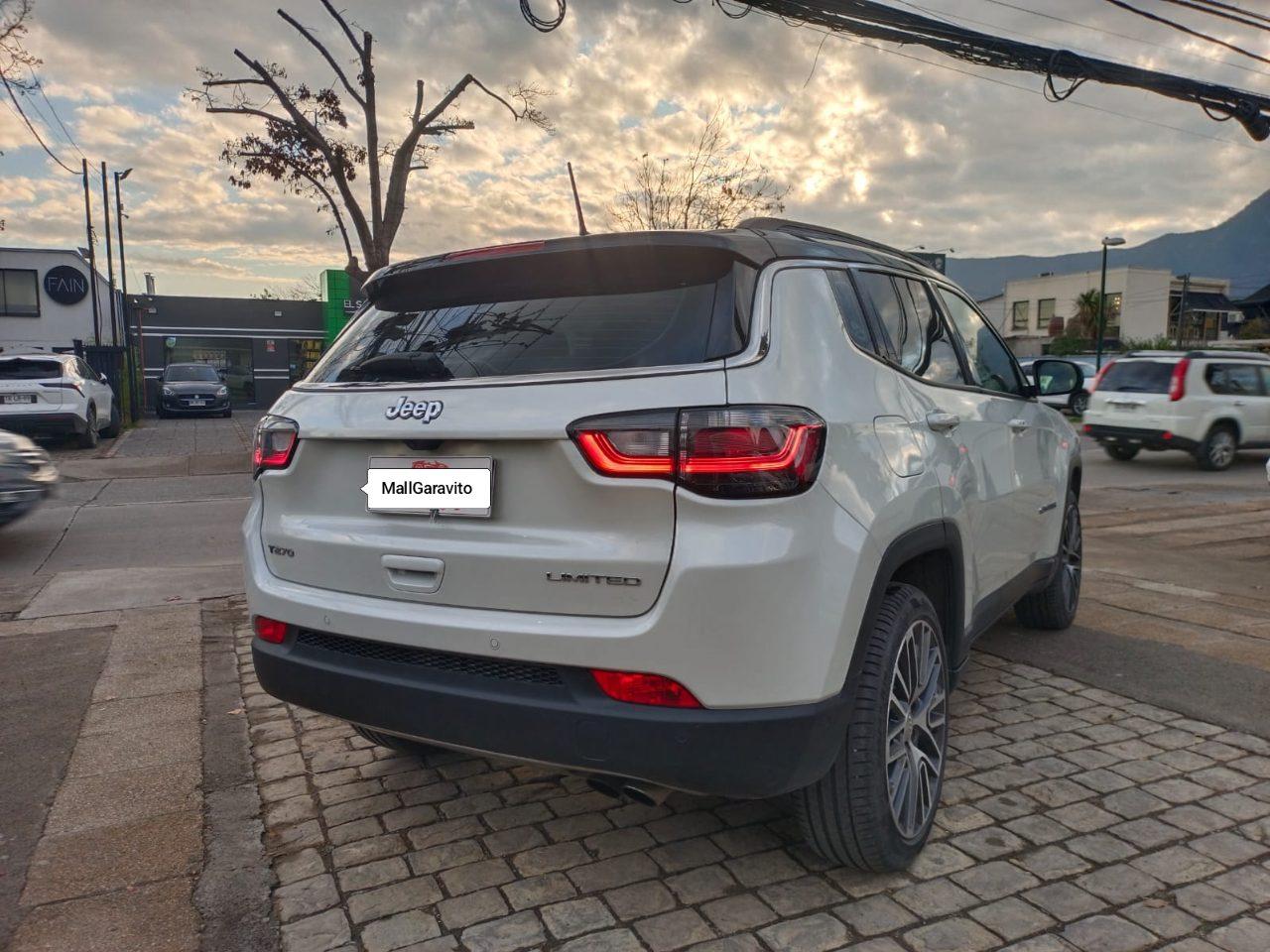 2024 Jeep Compass Limited T270 1.3 AT6 4x2 Mantención en la marca y total garantía Único dueño, 2 llaves Cierre centralizado apertura a distancia, eleva vidrios eléctricos, encendido a distancia Remote Start Volante multifuncional. control crucero, Levas al volante, pantalla de 7” touchscreen, System. Apple CarPlay, Google Android Auto, cámara de retroceso, techo panorámico. Neblineros delanteros y luces con seguimiento angular para viraje, e luz LED, Sistema de asistencia al estacionar, perpendicular y paralelo, cámara de retroceso sensores traseros, Airbags, sujeción LATCH para sillas de bebé. Potencia máxima (hp) 180 @ 6250 rpm, Torque (N-m) 231 @ 3900 rpm Compra Inteligente-Financiamiento Automotriz Tarjeta débito y crédito. Retoma de vehículo y moto Seguro para todo tipo de vehículo.