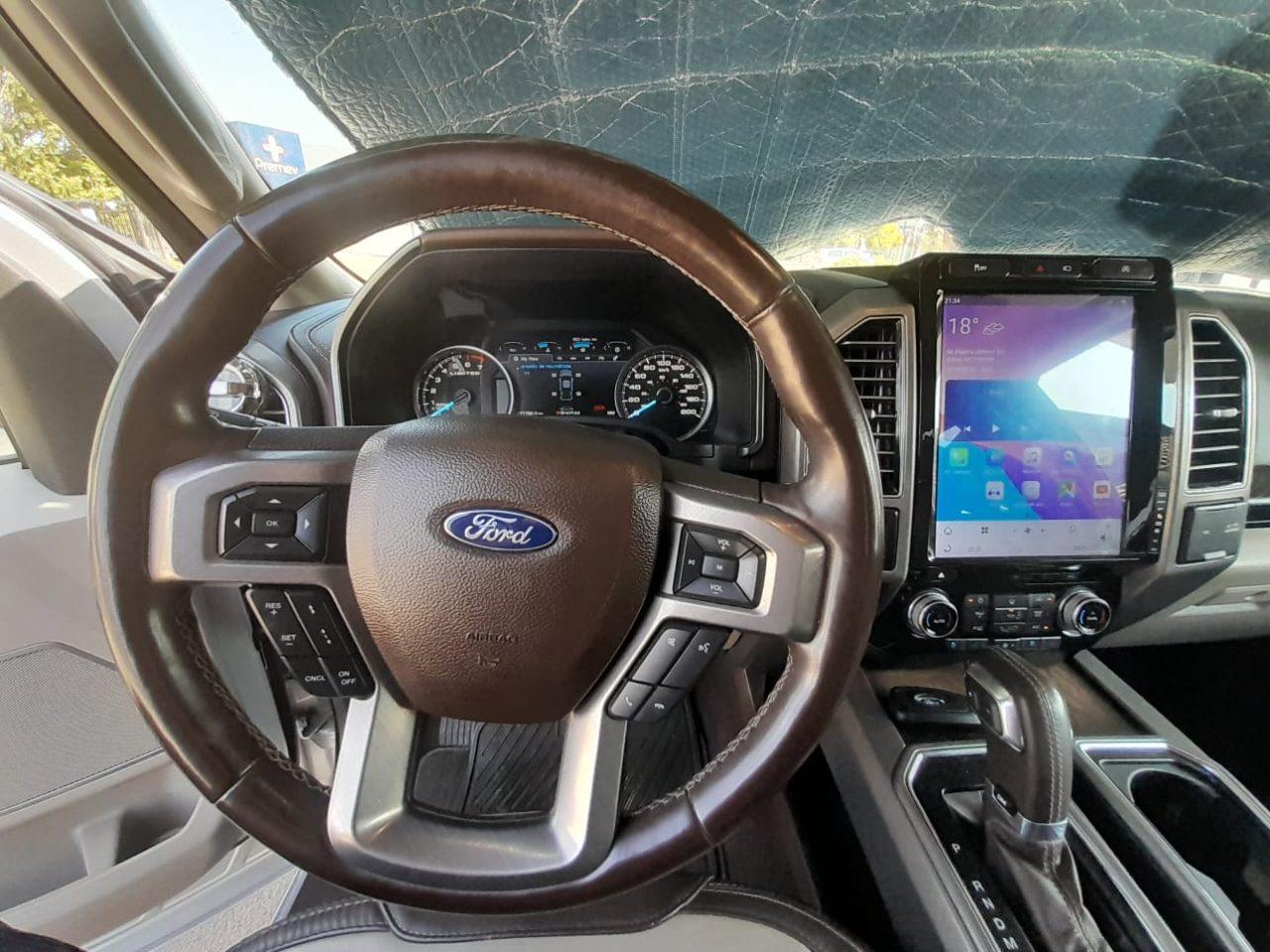2020 Ford F-150 3.5 Auto Limited 4WD. Segundo propietario, incluye dos llaves. Mantenciones realizadas según pauta, en la marca y con mecánico particular reconocido. Apertura a distancia, cierre centralizado, alzavidrios eléctricos, retrovisores exteriores eléctricos, acceso y arranque sin llave, encendido remoto de motor. Volante multifuncional, control crucero adaptativo, aire acondicionado y climatizador bizona. Sistema SYNC3 con pantalla táctil de alta resolución, compatibilidad Apple CarPlay y Android Auto, cámara de reversa con sensores, cámaras 360°, panel de instrumentos digital. Asientos delanteros eléctricos con memoria, ventilados y calefaccionados; tapiz en cuero premium. Freno de mano eléctrico, múltiples airbags, anclajes Isofix, faros delanteros y traseros LED, faros antiniebla LED, iluminación distintiva Limited. Motor 3.5L EcoBoost Twin-Turbo con gran potencia y torque, tracción 4WD para máximo desempeño en ruta y Off Road. Compra Inteligente – Financiamiento